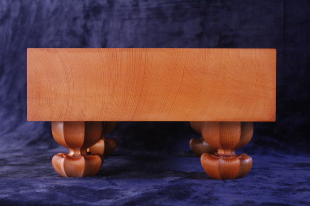 この碁盤の榧原木は、綾営林署が須木村の山中から切り出し、昭和63年2月宮崎市の住吉貯木場で1立方メートル(1㎥)当たり4,000万で入札したものであります。